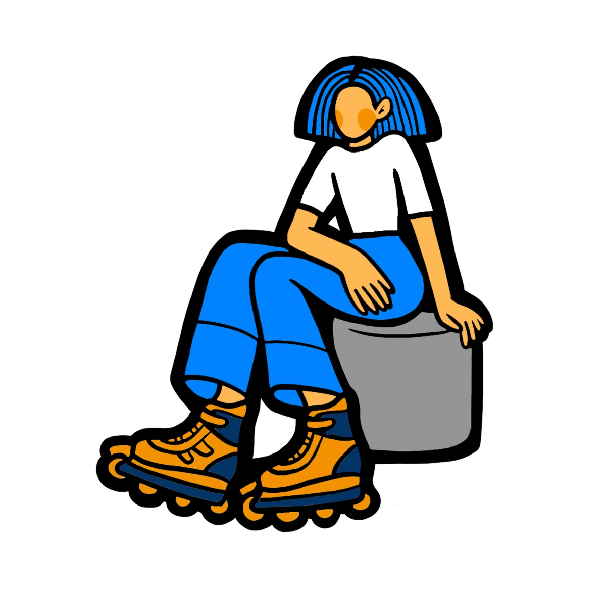 - Nadruk: grafika na lewej piersi przedstawiająca siedzącą rolkarkę prezentującą swoje rolki