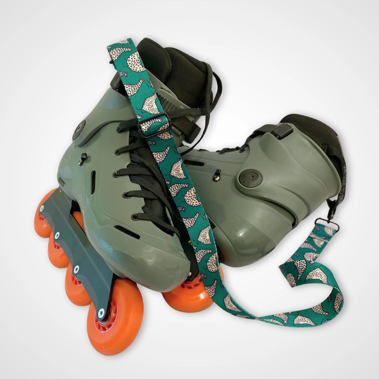 Nosidła do rolek z kurkowym wzorem. Model „Jazda Wiejska” sprawdzi się, gdy urban skating już Cię męczy i tęsknisz za trasami po malowniczych przedmieściach. Albo zwyczajnie kochasz kurki. Regulacja od 48 do 88 cm, 2x czarny matowy karabińczyk, taśma o szerokości 30mm. Lekkie, wygodne nosidło, które nadaje każdej  jeździe… swojski klimat. #niekażdyjeździpomieście